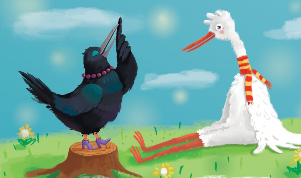 Гэтае Галчаня вельмі цікаўнае і непаседлівае. Аднойчы так далёка вытыркнулася з гнязда, што выпала. Але не разбілася, а, адчайна залапатаўшы крыламі, мякка апусцілася на зямлю.