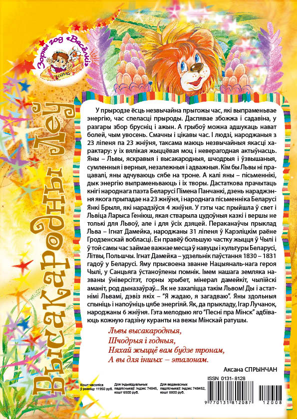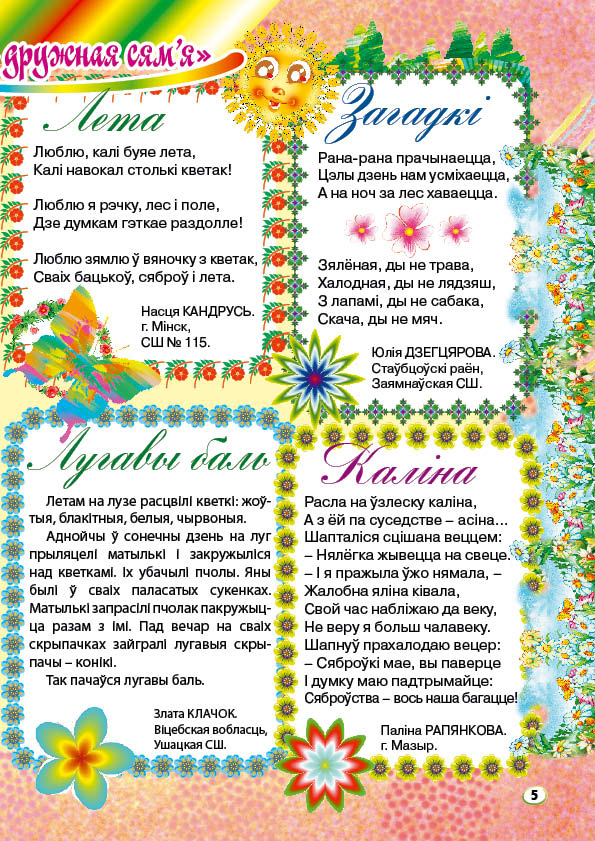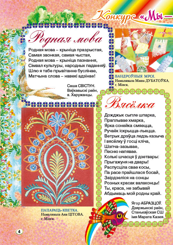 Сябры, не так даўно дзіцячы часопіс “Вясёлка” адсвяткаваў свой 55-гадовы юбілей. Увесь гэты час “Вясёлка” радавала сваіх чытачоў цікавымі творамі, а яе колеры нязменна ззялі ўсім Дзецям краіны Маленства.