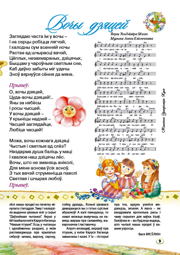 Спеўнік “Вясёлкі” Вочы дзяцей Верш Уладзіміра Мазго Музыка Алега Елісеенкава