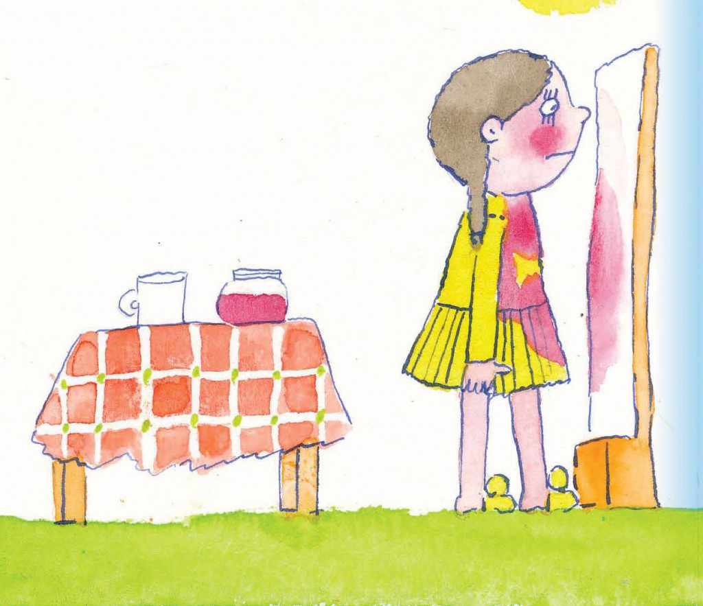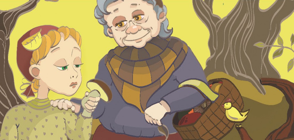Маша вясёлая. Першы раз у жыцці збірала грыбы. Дзед даверыў ёй ножык, і яна сама зразала сыраежкі, падбярозавікі, клала іх у