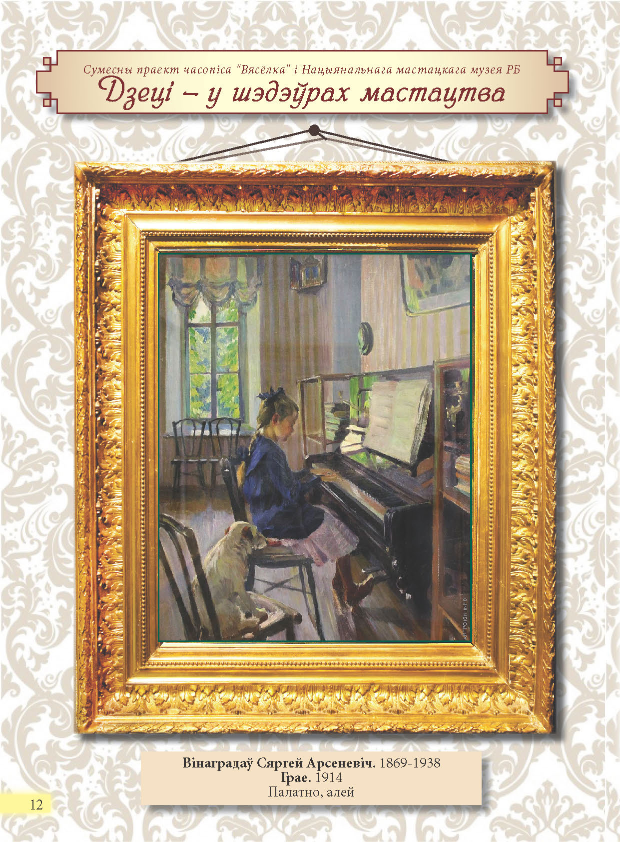 – Сёння да мяне прыйдуць сяброўкі, і мы дамовіліся гуляць у “Музей”, — сказала дзяўчынка, – я буду экскурсаводам, мне трэба распавесці ім пра знакамітага мастака Сяргея Вінаградава і адну з яго карцін.