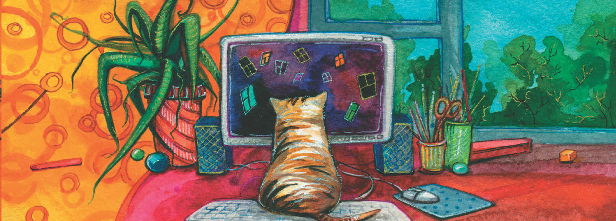 Віця глянуў на гадзіннік: ён жа ў школу спазняецца! Хуценька схапіў партфель і пабег. А Муся засталася ля камп’ютара, які Віця забыўся выключыць. “Што за незвычайныя карцінкі выскокваюць?” – падумала яна і яшчэ раз прайшлася лапкай па клавіятуры. “Не можа быць? І тут птушкі! І такія вялікія, і незвычайныя! Такія, што ля нашага дома не лятаюць!” Некаторых з іх яна нават забаялася. “А гэта што?” – Муся бліжэй падсунулася да экрана. – “Стварыце сваю хатнюю сетку “Дамавічок”. Дзяліцеся навінамі з сябрамі – жыхарамі вашага дома!”