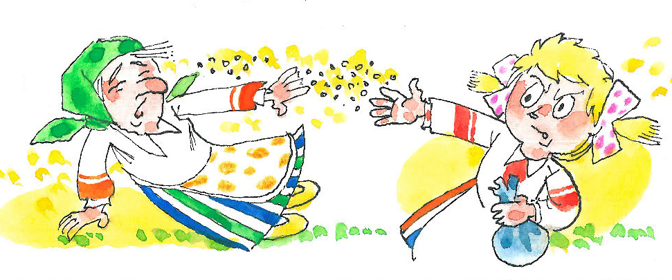 БАБА-ЯГА (хітра). А ягадкі свае дасі? Я нічагусенькі не ела…
