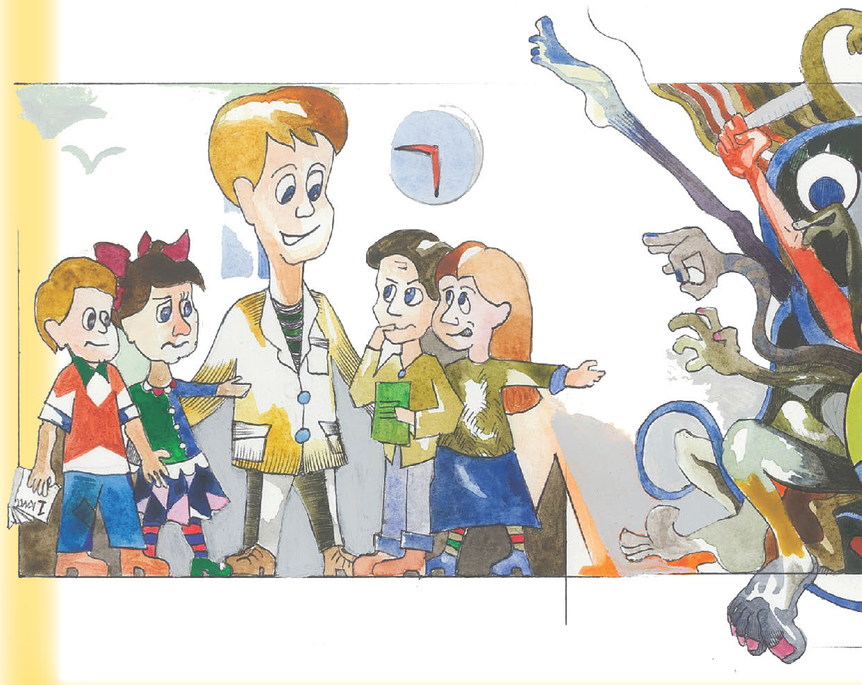 – А ён нябачны. Таму і можа шкодзіць калі захоча. А яшчэ ён любіць ухапіць цябе, Славік, за руку і тузануць ёй каго-небудзь.