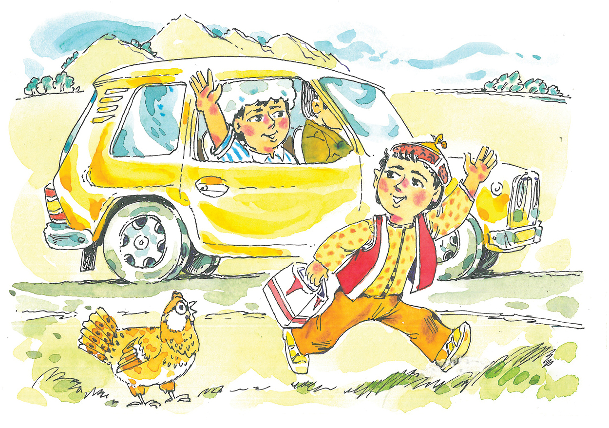Каля невялікага аула хлопчык папрасіў спыніцца, сказаў: “Вялікі вам дзякуй!” і пабег.