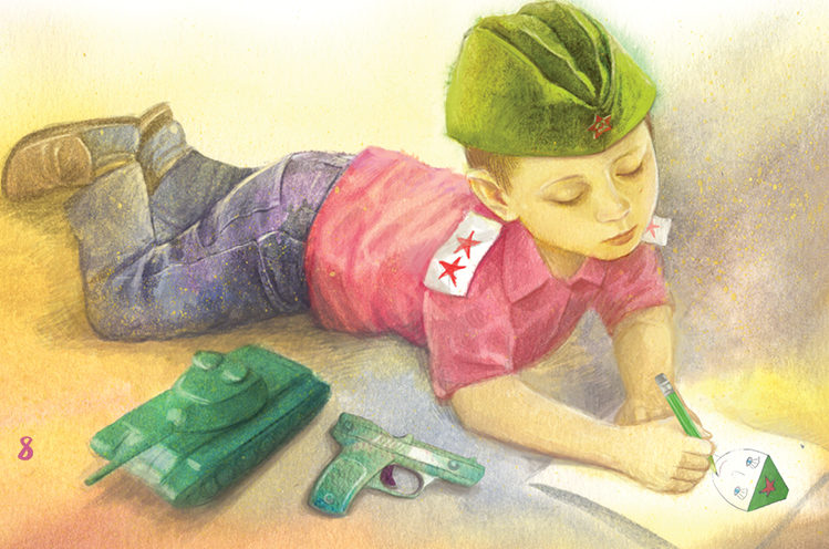 Рыгорка склаў пісьмо, намаляваў на ім чырвоную зорачку і падпісаў: “Салдацкае пісьмо”. Паклаў на столік у пярэднім пакоі. Вернецца мама – адразу ўбачыць.