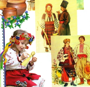 Традыцыйныя ўкраінскія касцюмы падобныя да беларускіх і ўсходнеславянскіх строяў. Асноўныя элементы мужчынскай вопраткі кашуля, шытая з льняной тканіны і штаны з воўны. Адметнасцю кашулі з’яўляецца пазушка – разрэз спераду, упрыгожаны вышыўкай. Ён зашпільваецца на гузікі, альбо завязваецца каля вората цясёмкамі. Украінцы носяць кашулю, запраўляючы яе падол у штаны, гэты элемент пераняты ад усходніх качэўных народаў. Штаны падпаясвалі шнурком, або рэмнем, – яго насілі з пражкай. Штаны казакоў адрозніваліся сваёй вялікай шырынёй. Паміж штанінамі ўшываўся прамавугольны кавалак тканіны, такім чынам, яны мелі падабенства са звычайным мехам. Галаўныя ўборы па форме – гэта конусы, цыліндры, і паўкруглыя шапкі. Вырабляліся яны з футра, воўны, тканіны.