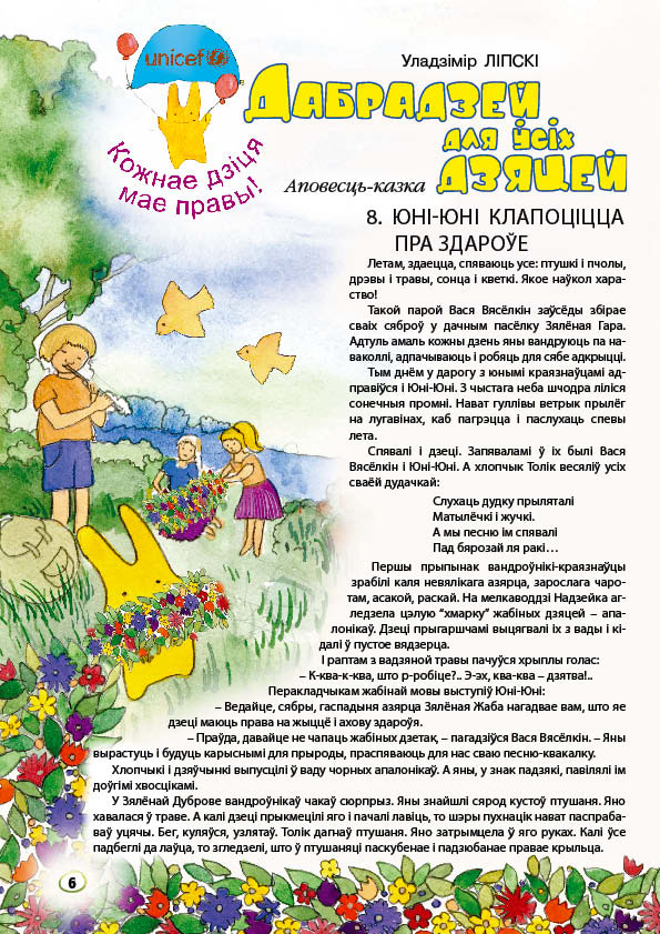– Ведайце, сябры, гаспадыня азярца Зялёная Жаба нагадвае вам, што яе дзеці маюць права на жыццё і ахову здароўя.