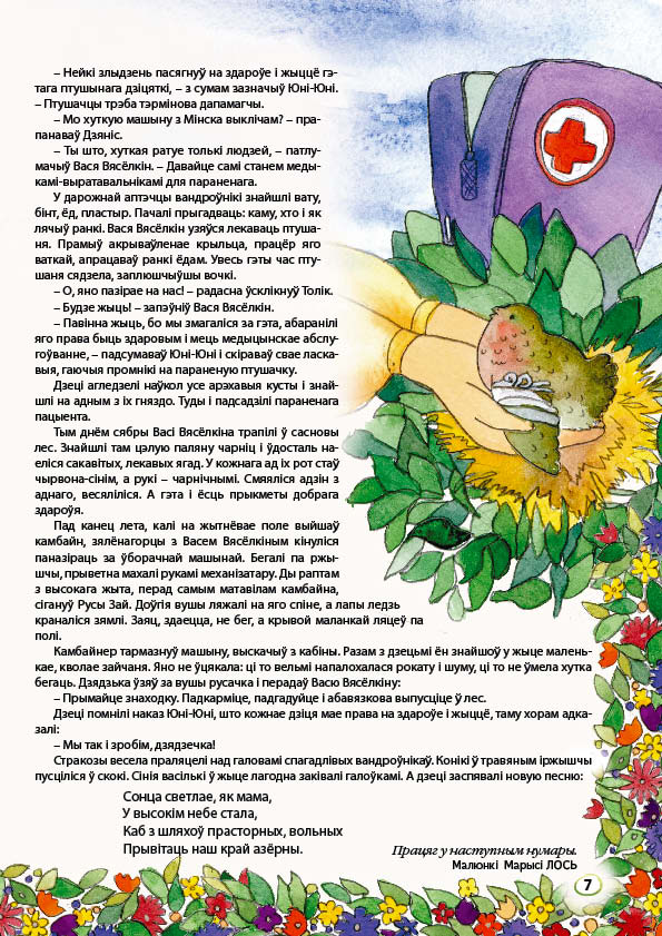 – Ты што, хуткая ратуе толькі людзей, – патлумачыў Вася Вясёлкін. – Давайце самі станем медыкамі-выратавальнікамі для параненага.