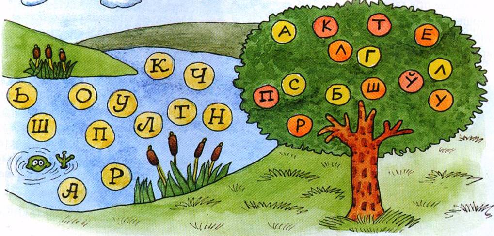 Якая рыба водзіцца ў возеры? Каб адгадаць, падбярыце правільна літары ў словы-назвы. Якія птушкі вяртацца да нас вясной? Паглядзіце на дрэва, падбярыце правільна літары ў словы — назвы птушак.