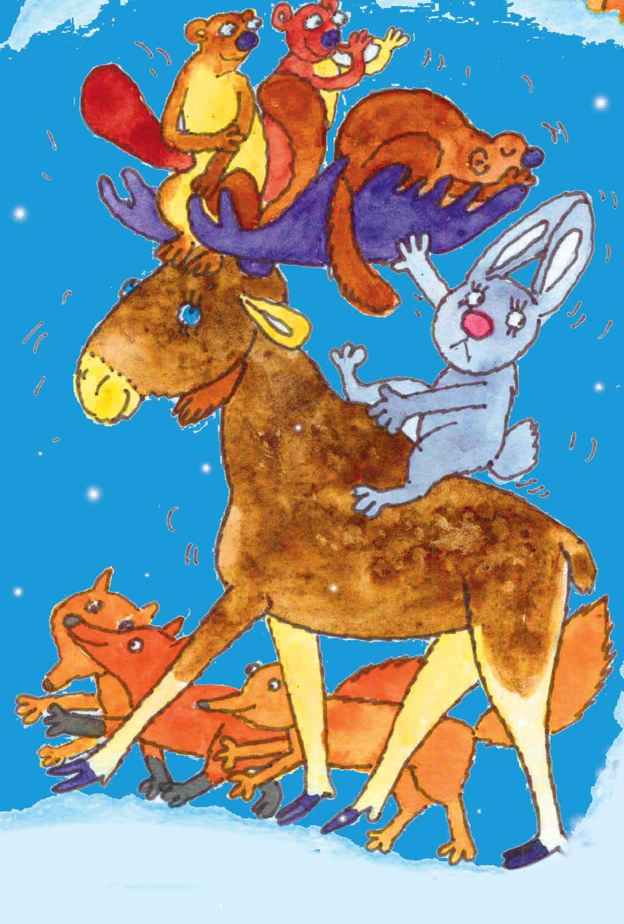 Крочаць сцежкай да ракі Заяц, лось і два ваўкі, Тры лісы і тры куніцы, Колькі ўсіх – вы падлічыце.