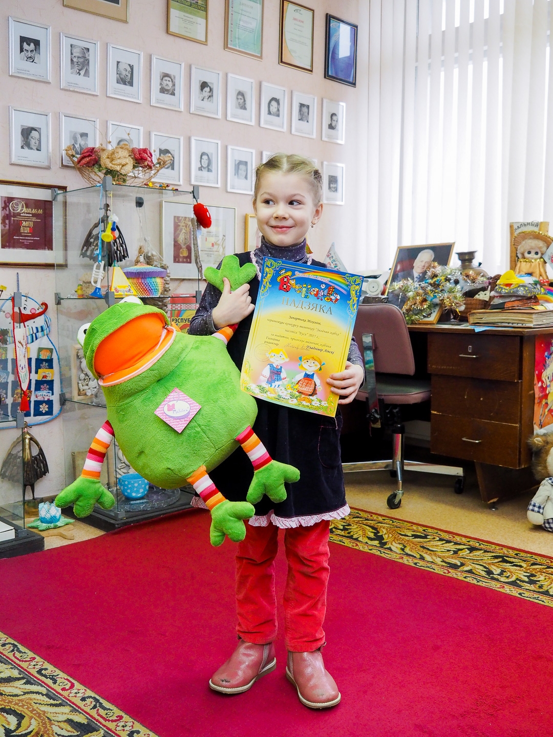 Міхаліне Запартыка 5 гадоў. Любіць маляваць. Яна сустрэлася з галоўным рэдактарам часопісаў Уладзімірам Ліпскім, пазнаёмілася з музеем “Вясёлкі”, атрымала дыплом, цацкі ― Зялёную Жабку і Грошыка. Спадзяемся, для Міхаліны гэта сустрэча запомніцца надоўга.